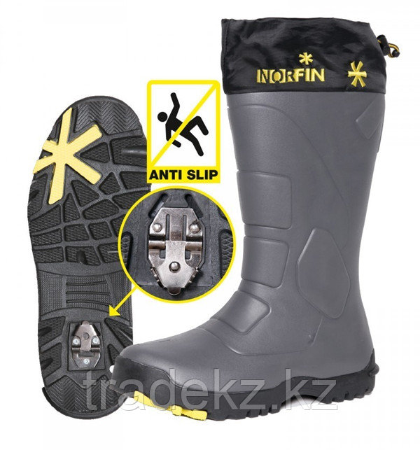 Зимние сапоги Norfin Klondaik из материала EVA с вынимаемым вкладышем. За счет толстого теплого вкладыша и особенностей материала EVA, в котором растворено большое количество микропузырьков воздуха (вспененная резина), сапоги обеспечивают термозащиту в динамике при температуре до -40°С. Сапоги оборудованы системой Anti Slip, предотвращающей скольжение на льду. Для ее функционирования установите поворотный шип в рабочее положение.